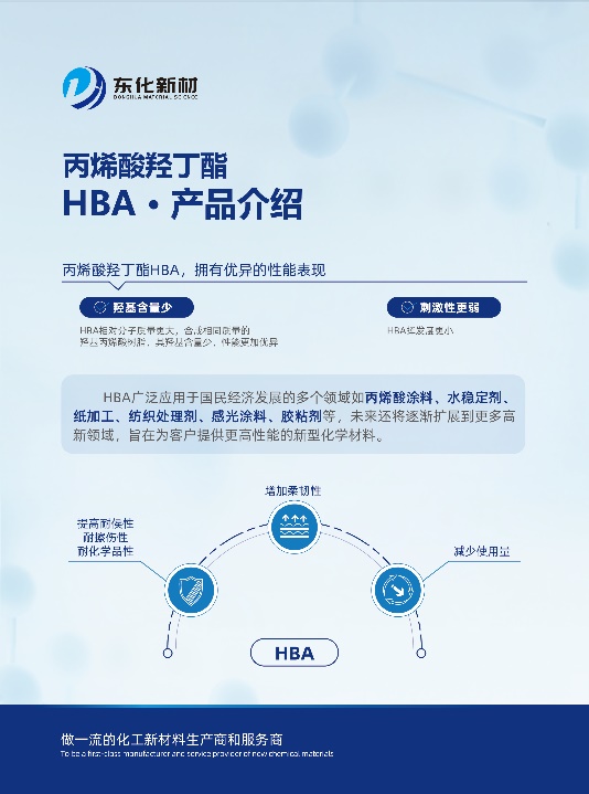 響應日(rì)益嚴格的(de)減排法規和(hé)環保健康要(yào)求,東(dōng)化(huσ&™à)推出的(de)丙烯酸羟丁酯HBA,具有(yǒu)氣味低(•↕☆dī),沒有(yǒu)刺激性的(de)優點,可(kě)以用(yòng)于丙烯酸塗料、水(sh ₽× uǐ)穩定劑、紙(zhǐ)加工(gōng)、紡織處理(lǐ)劑、感光(guān¥ g)塗料、膠粘劑等領域。以下(xià)是(shì)一(yī)組β> π對(duì)比評測數(shù)據: